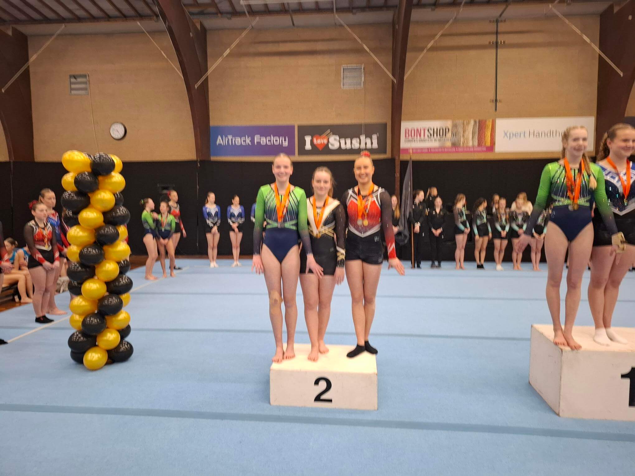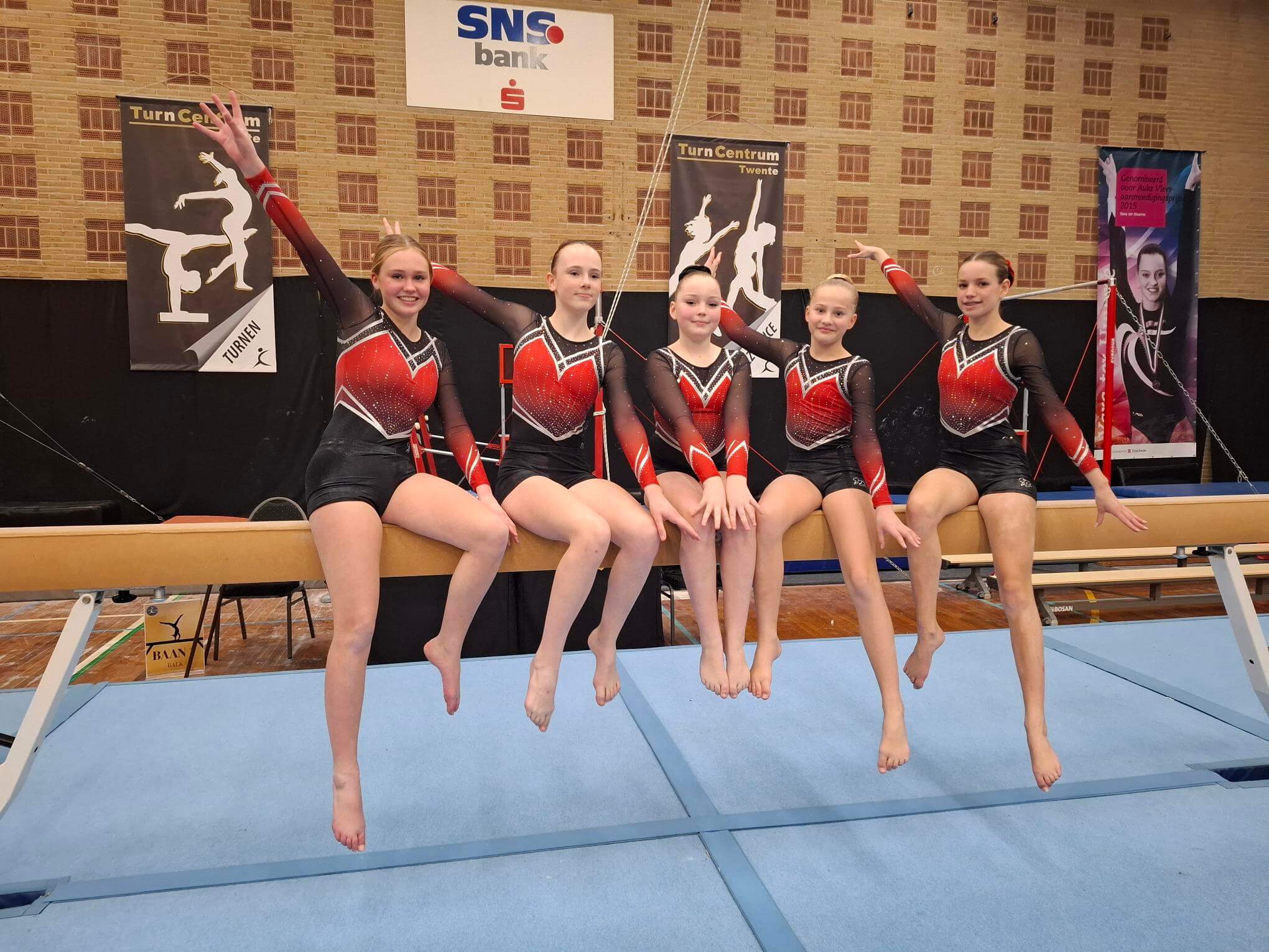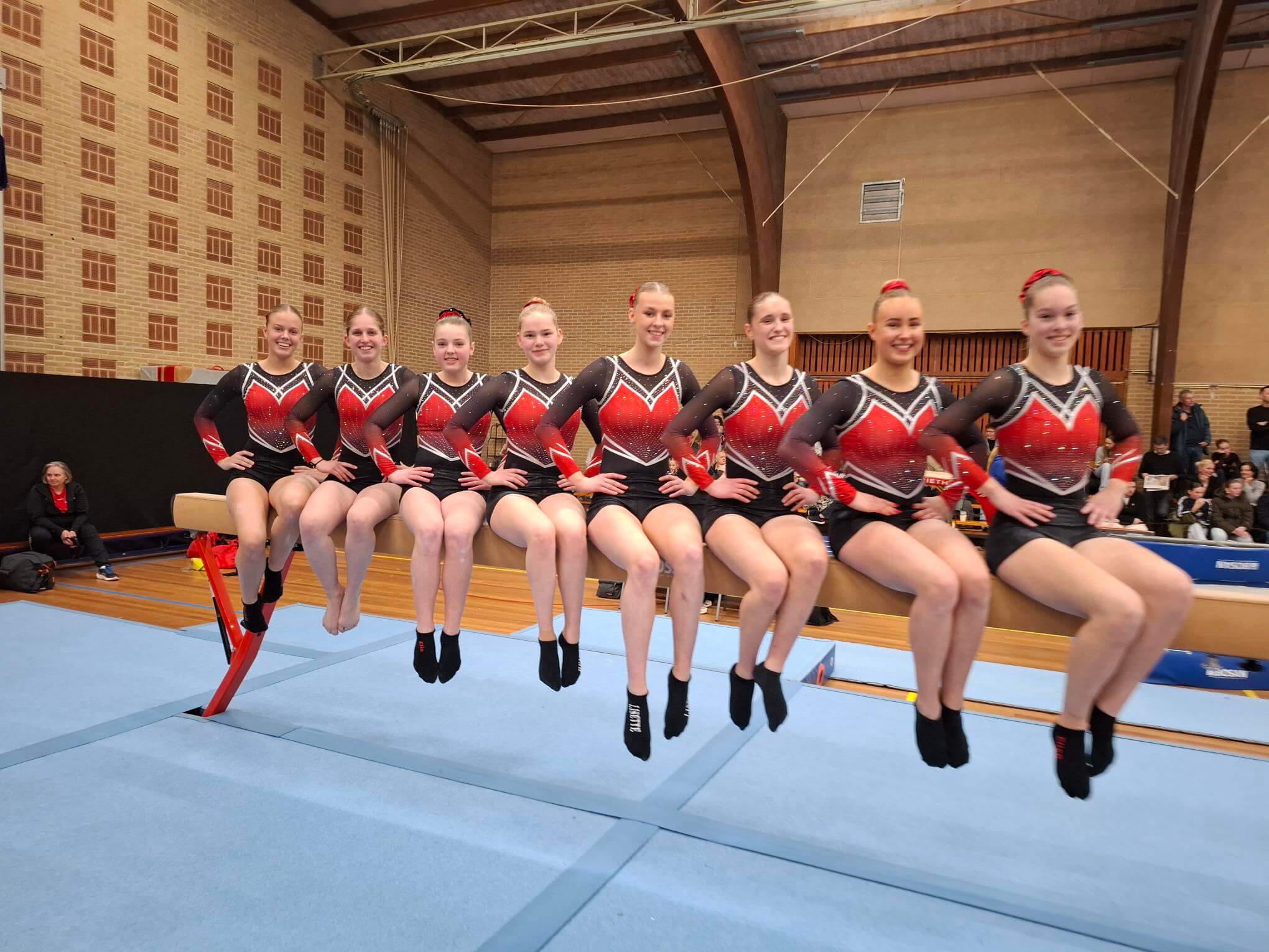 Het team van: Naomi, Stacy, Fajah, Meike en AmberRoos zijn 4de geworden als team, maar er zijn toch veel individuele verbeteringen geturnd. Fajah wist een prima balk te turnen en was AmberRoos weer in staat goede oefeningen te laten zien op balk en vloer na een blessure. Zo werd bij de jeugd Naomi Bos 4de en Fajah Hoeve 5de.
